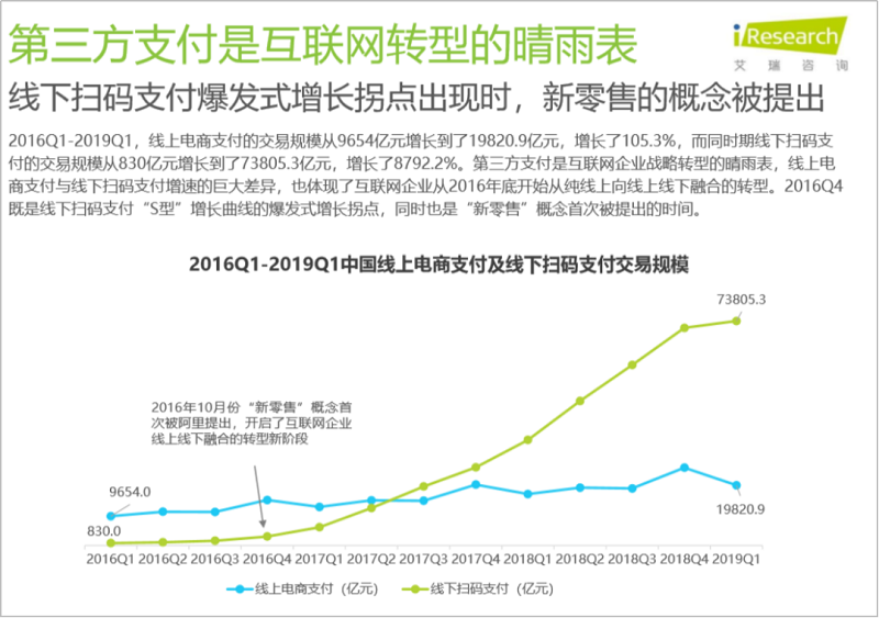 线下扫码支付爆发式增长拐点出现,新零售的概念被提出。